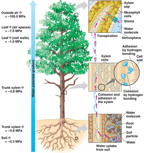 Figure 1. Water and dissolved substances absorbed and transported by plants